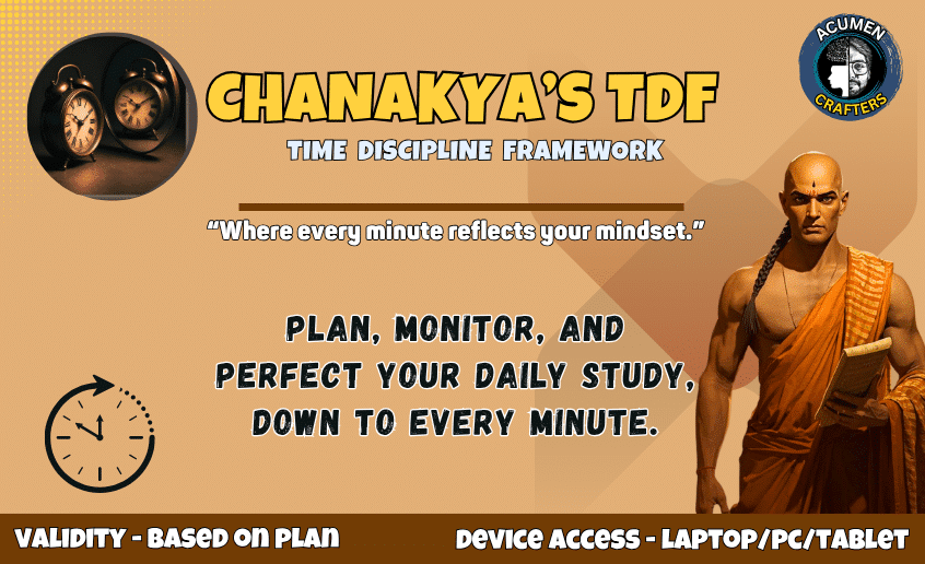 Chanakya’s Time Discipline Framework (TDF) is a full-day study discipline system with structured monitoring and guidance (light mentoring), combining: